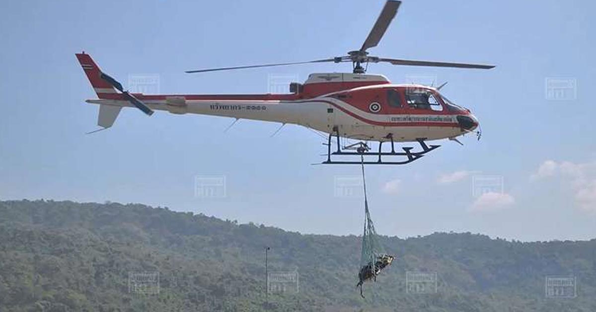 เปิดภาพวินาที เฮลิคอปเตอร์ขนย้ายหมีควาย ก่อนตกลงมาตายที่เขาใหญ่