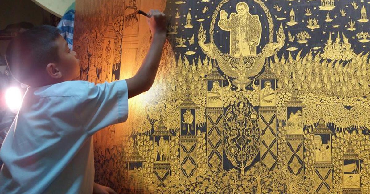 น้องอามานี่ ลูกศิษย์ อ.เฉลิมชัย จรดปลายปากการังสรรค์ภาพวาด ร.9 สุดวิจิตร