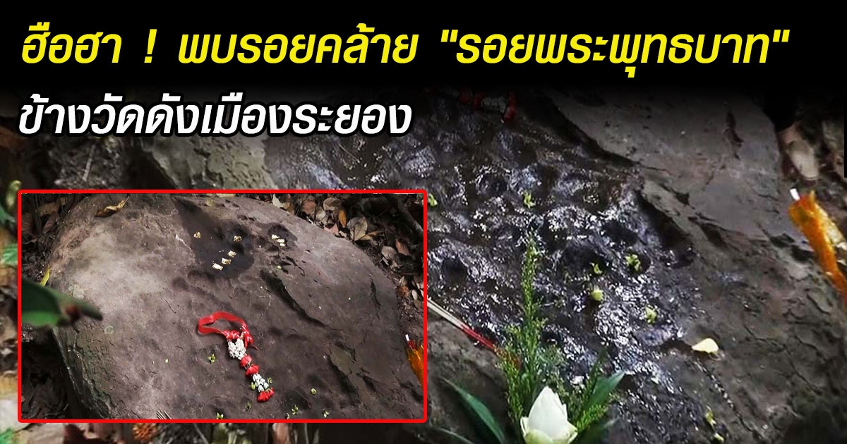 ฮือฮา ! พบรอยคล้าย "รอยพระพุทธบาท" บนก้อนหินใหญ่ข้างวัดดังเมืองระยอง