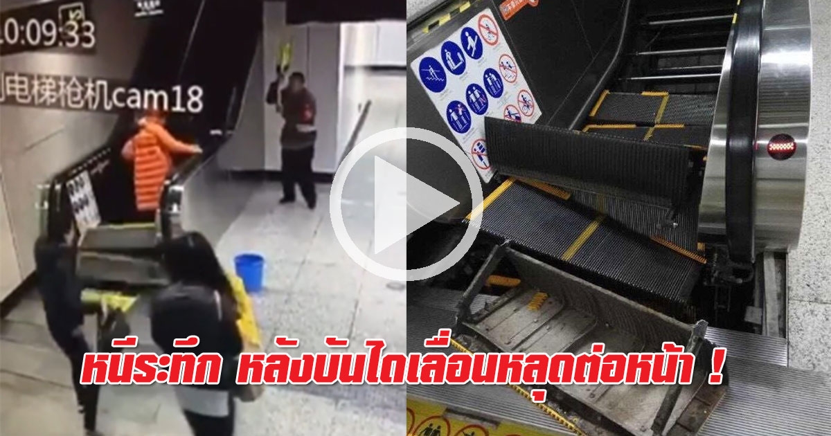 หนุ่ม-สาวหนีระทึก บันไดเลื่อนหลุดต่อหน้า ทั้งที่ยังก้าวขาไม่พ้น หวิดถูกกลืนร่าง