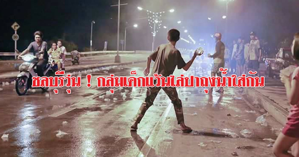 ชลบุรีวุ่น ! กลุ่มเด็กแว้นไล่ปาถุงน้ำใส่กัน พีคสุดมีใส่น้ำมันเครื่องลงไปด้วย