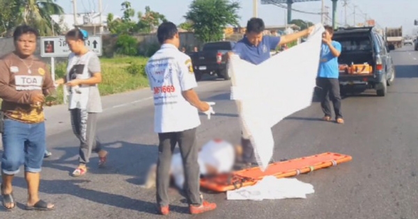 สลด.. ชายต่างชาติปั่นจักรยานข้ามถนน ตัดหน้ากระบะกะทันหัน ถูกชนจัง ๆ