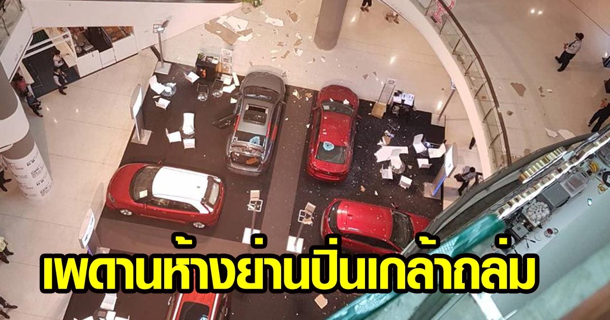 เกิดเหตุฝ้าเพดานห้างดังย่านปิ่นเกล้าถล่ม รถโชว์ชั้นล่างเสียหาย
