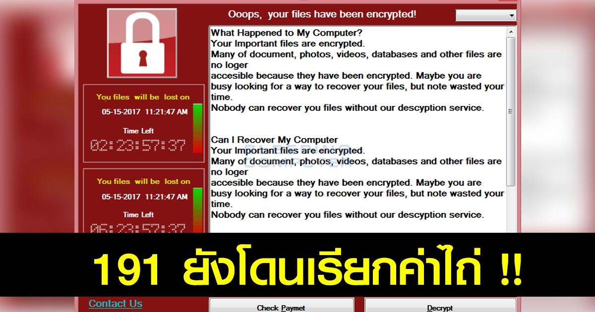 191 ยังโดน สตช. รับถูกมัลแวร์เรียกค่าไถ่โจมตี ยันไม่กระทบการบริการ