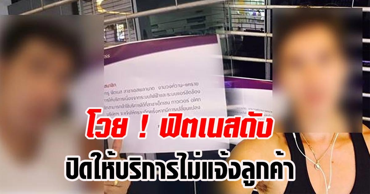 โวย ฟิตเนสดัง ปิดให้บริการไม่แจ้งลูกค้า มีแค่ป้ายปิดหน้าร้าน-อ้างระบบไฟขัดข้อง