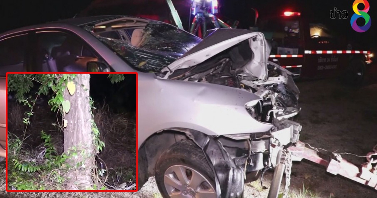 เศร้า พ่อแม่ดับหลังขับเก๋งพาลูกสาว-เพื่อนกลับบ้าน รถพุ่งอัดเข้าต้นไม้ข้างทาง