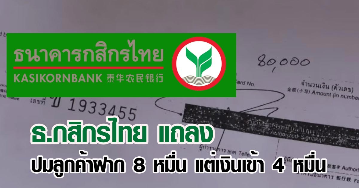 ธนาคารกสิกรไทย แถลงปมลูกค้าฝาก 8 หมื่น แต่เงินเข้า 4 หมื่น โร่แจงเจ้าของบัญชี
