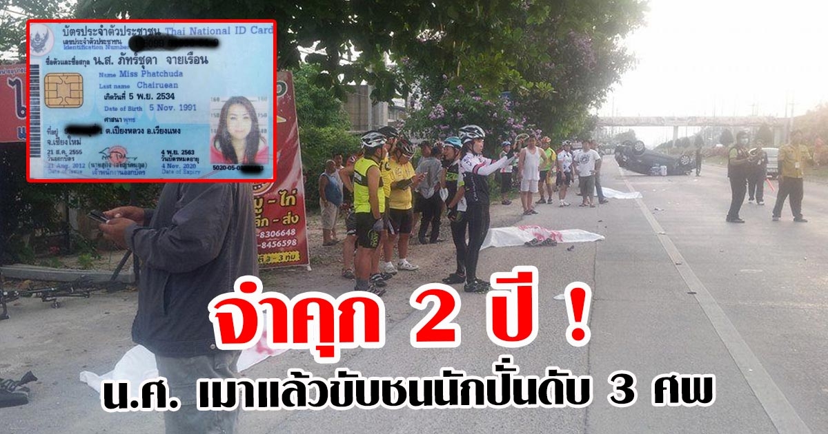 จำคุก 2 ปี ! นศ. สาวเชียงใหม่ เมาแล้วขับชนนักปั่นดับ 3 ศพ เมื่อปี 58