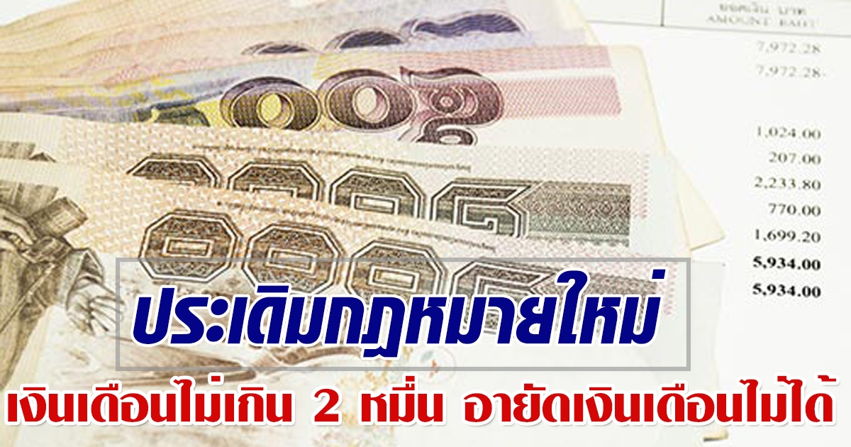 ประเดิมกฎหมายใหม่ ลูกหนี้เงินเดือนไม่เกิน 2 หมื่นบาท สั่งอายัดเงินเดือนไม่ได้