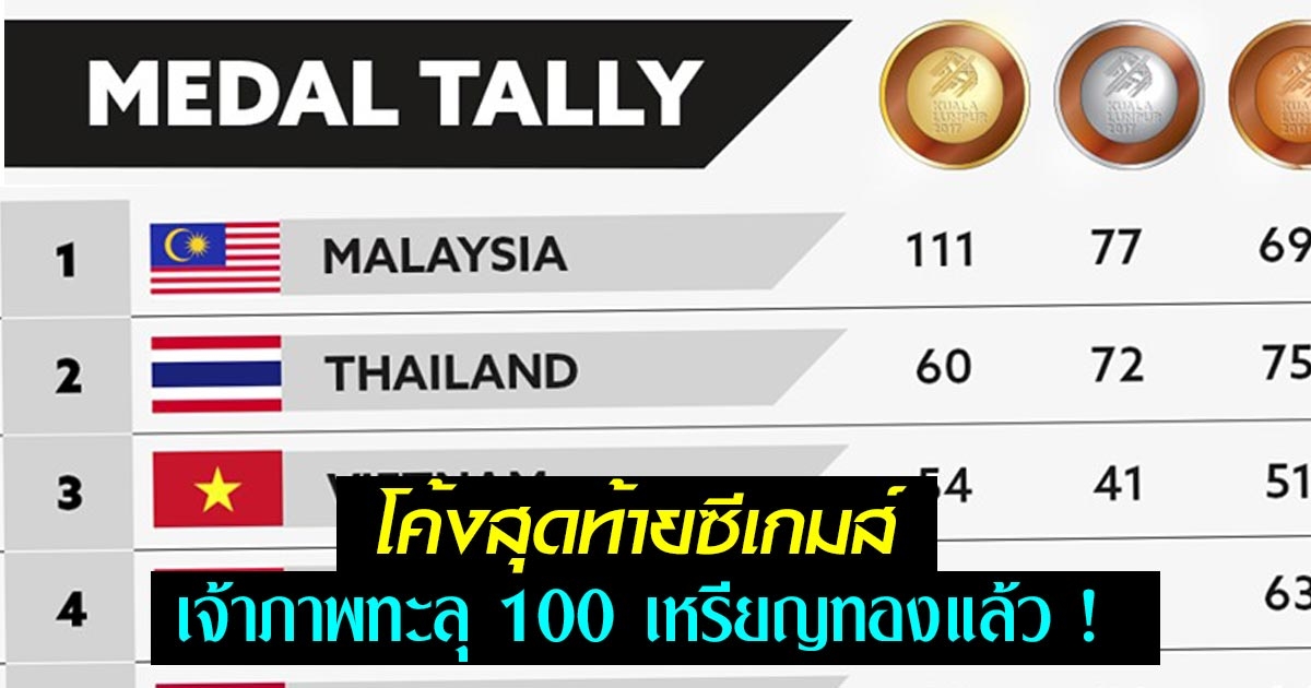 โค้งสุดท้ายซีเกมส์ มาเลย์ทองทะลุ 100 กว่าเหรียญ - ไทยทะยานขึ้นอันดับ 2
