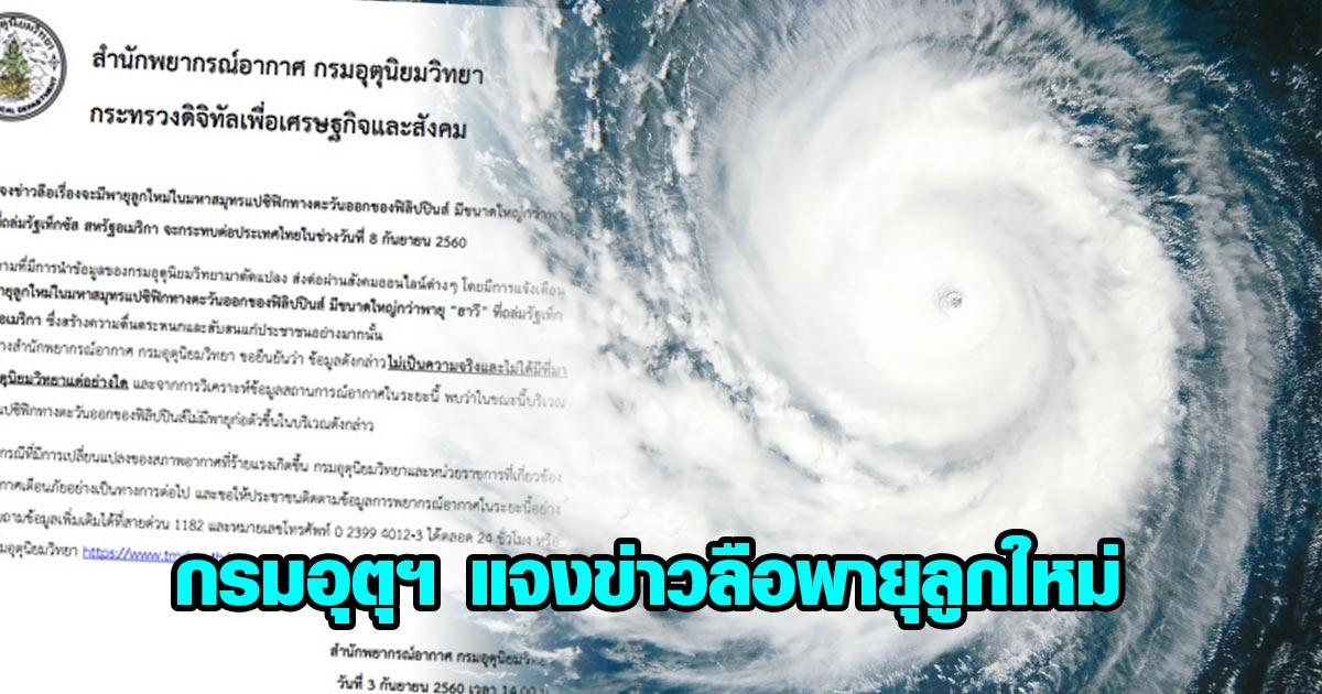 กรมอุตุฯ แจงข่าวลือพายุลูกใหม่รุนแรงกว่า "พายุฮาวี" กระทบไทย 8 ก.ย. นี้