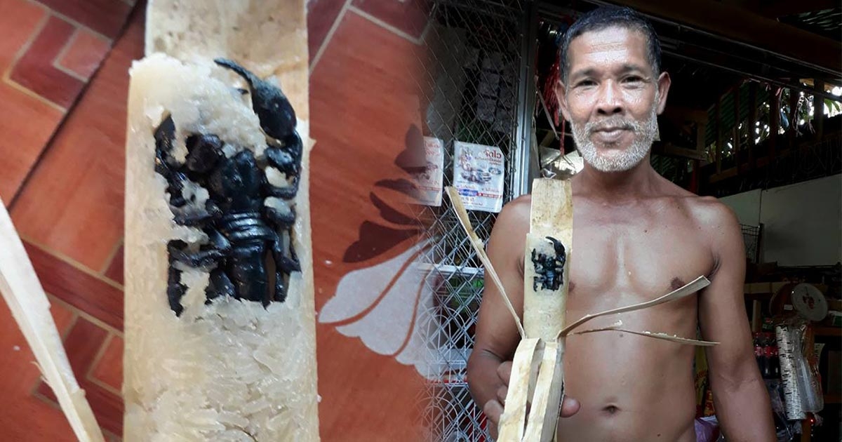 ล้วงคอแทบไม่ทัน หนุ่มเมืองคอนซื้อข้าวหลาม เจอแมงป่องตัวเป้งสอดไส้มาด้วย