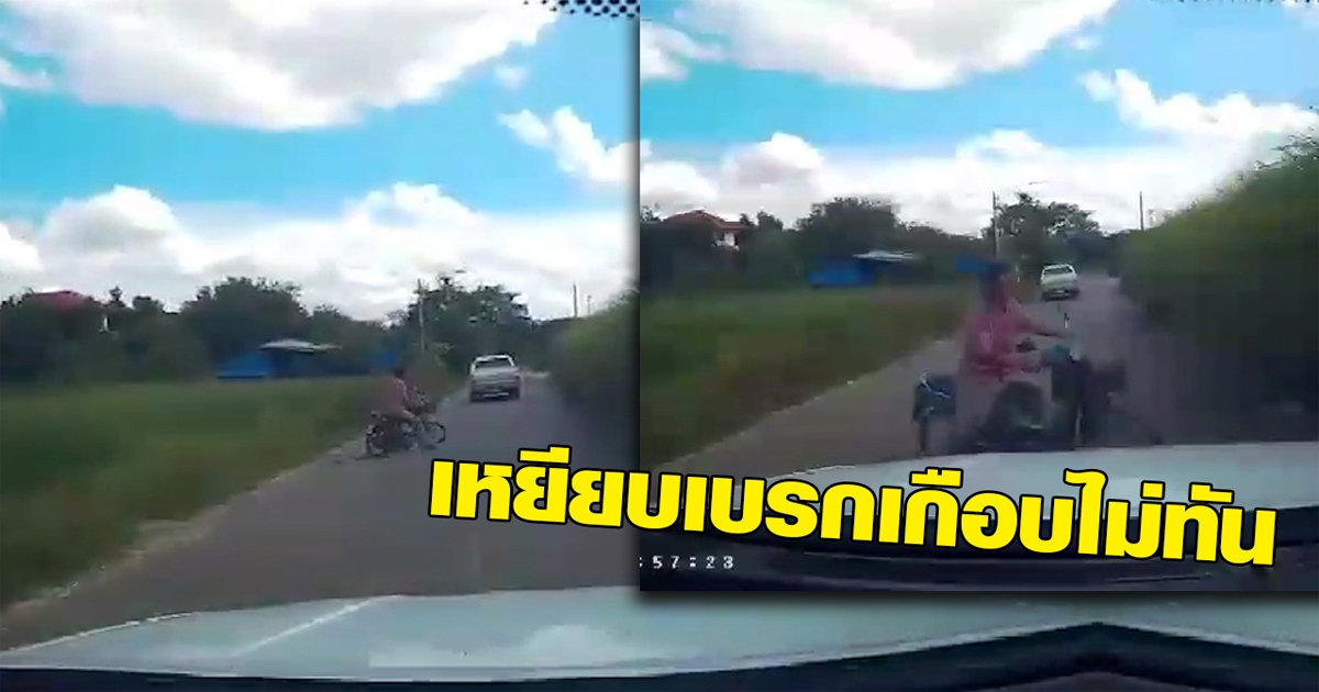 นาทีชีวิต มอเตอร์ไซค์ตัดหน้าเหยียบเบรกเอี๊ยด เฉียดนิดเดียว