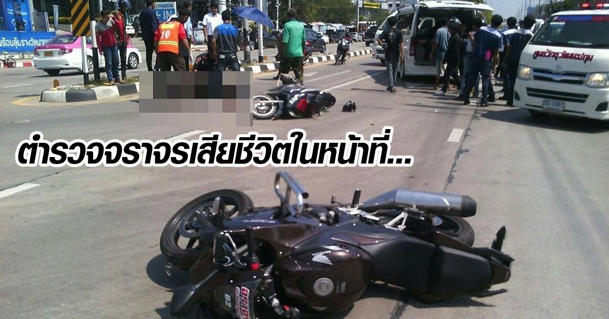 ตร. จราจร ขี่ตามรถฝ่าไฟแดง แต่เกิดชนกับวินมอเตอร์ไซค์เสียชีวิตในหน้าที่
