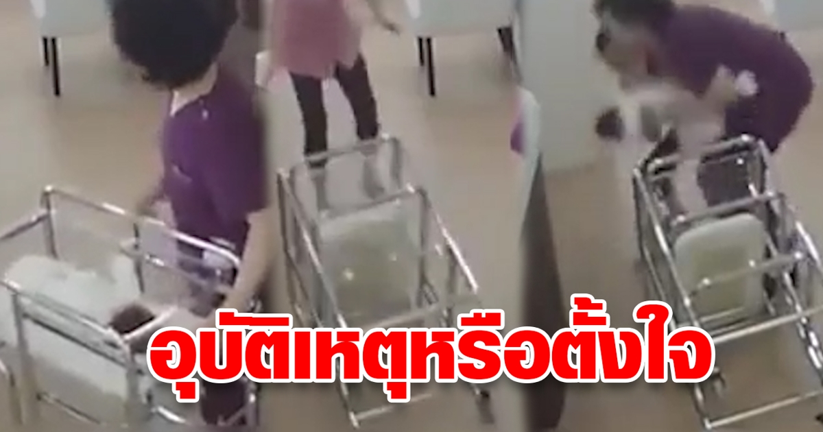 สะเทือนใจ เด็กอ่อนคว่ำกับพื้น ชาวเน็ตสงสัยพยาบาลเข็นหรือผลัก?
