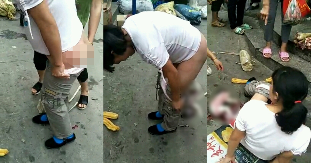 ช็อกไปตาม ๆ กัน หญิงจีนถกกางเกงคลอดลูกกลางถนน ปล่อยเด็กร่วงตกพื้น