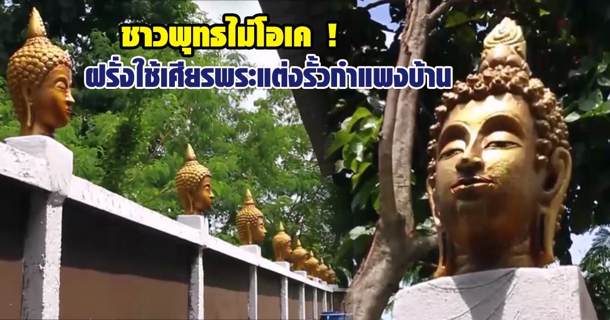 ชาวพุทธหดหู่ ! ฝรั่งใช้เศียรพระแต่งรั้ว-กำแพงบ้าน ด้านฝ่ายปกครองขอรื้อถอน