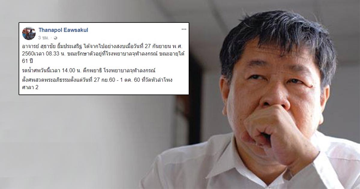 สุธาชัย ยิ้มประเสริฐ นักวิชาการประวัติศาสตร์ชื่อดัง เสียชีวิตแล้ว ในวัย 61