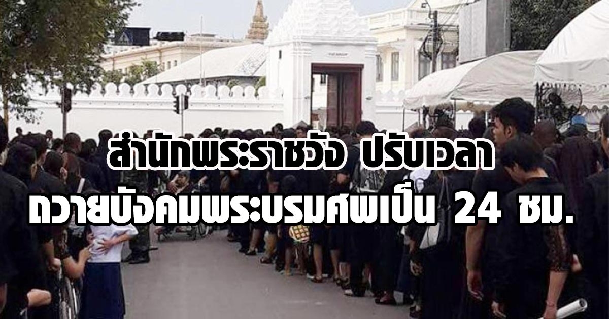 สำนักพระราชวัง ปรับเวลาเปิดจุดคัดกรองเข้ากราบถวายบังคมพระบรมศพเป็น 24 ชม.