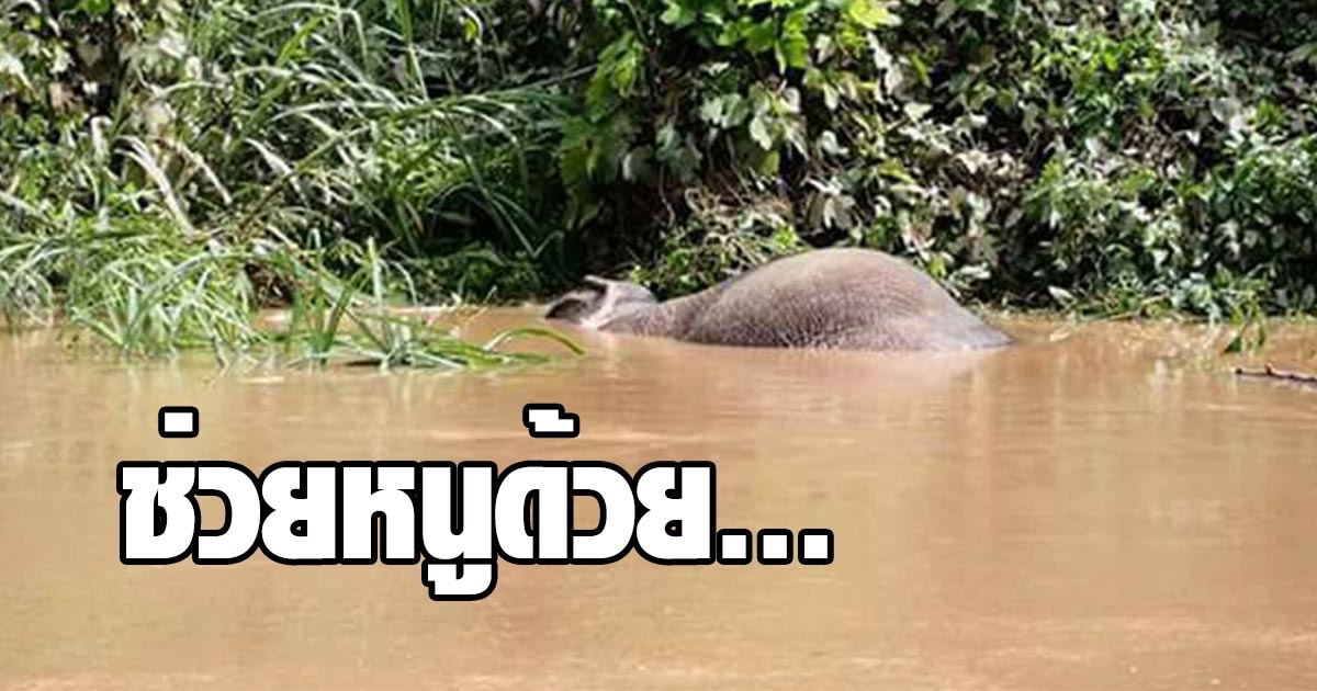 เร่งช่วยลูกช้างป่า ถูกน้ำซัดลอยคอในคลอง ชูงวงหายใจ...ใกล้หมดแรง