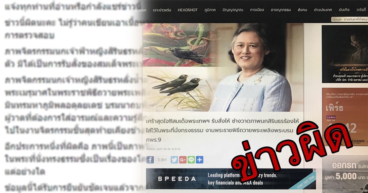 ข่าวมั่ว สมเด็จพระเทพรัตนฯ รับสั่งให้วาดภาพ "นกสิรินธรร้องไห้" ในพระที่นั่งทรงธรรม
