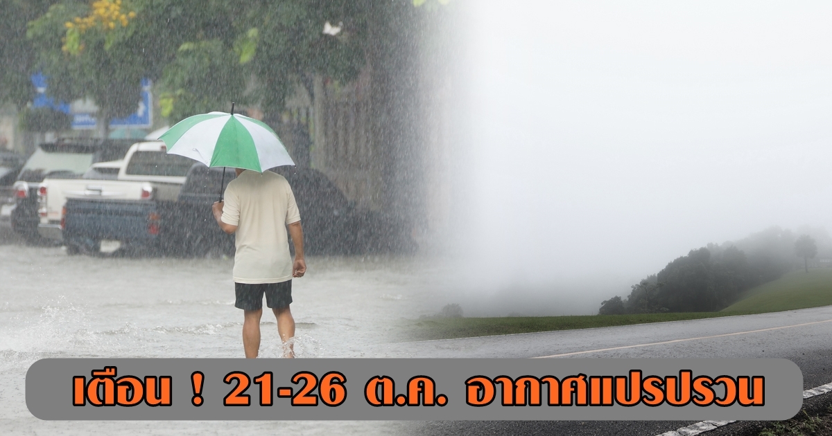 กรมอุตุฯ ประกาศเตือน 21-26 ต.ค. ฝนถล่ม-อุณหภูมิลด 2-5 องศา