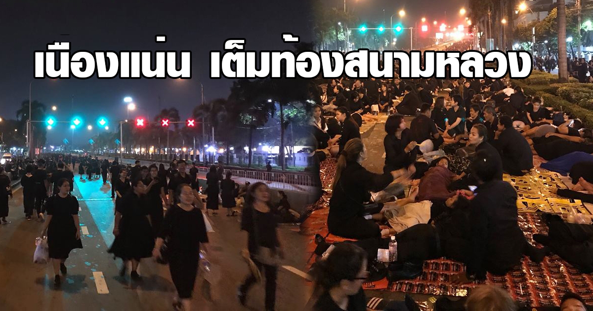 เปิดภาพเหล่าประชาชนเดินทางเข้าท้องสนามหลวงไม่ขาดสาย แม้จะดึกแค่ไหนก็ตาม