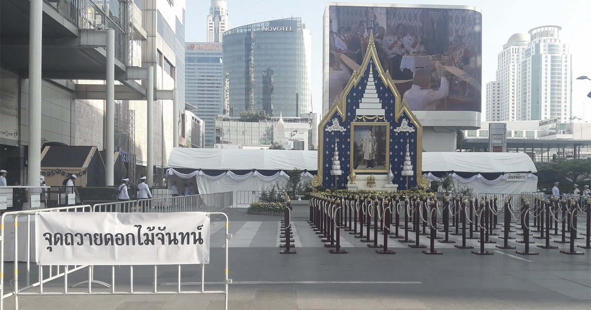 สำนักงานตำรวจแห่งชาติ และเซ็นทรัลเวิลด์ จัดซุ้มวางดอกไม้จันทน์ ในหลวง ร.9