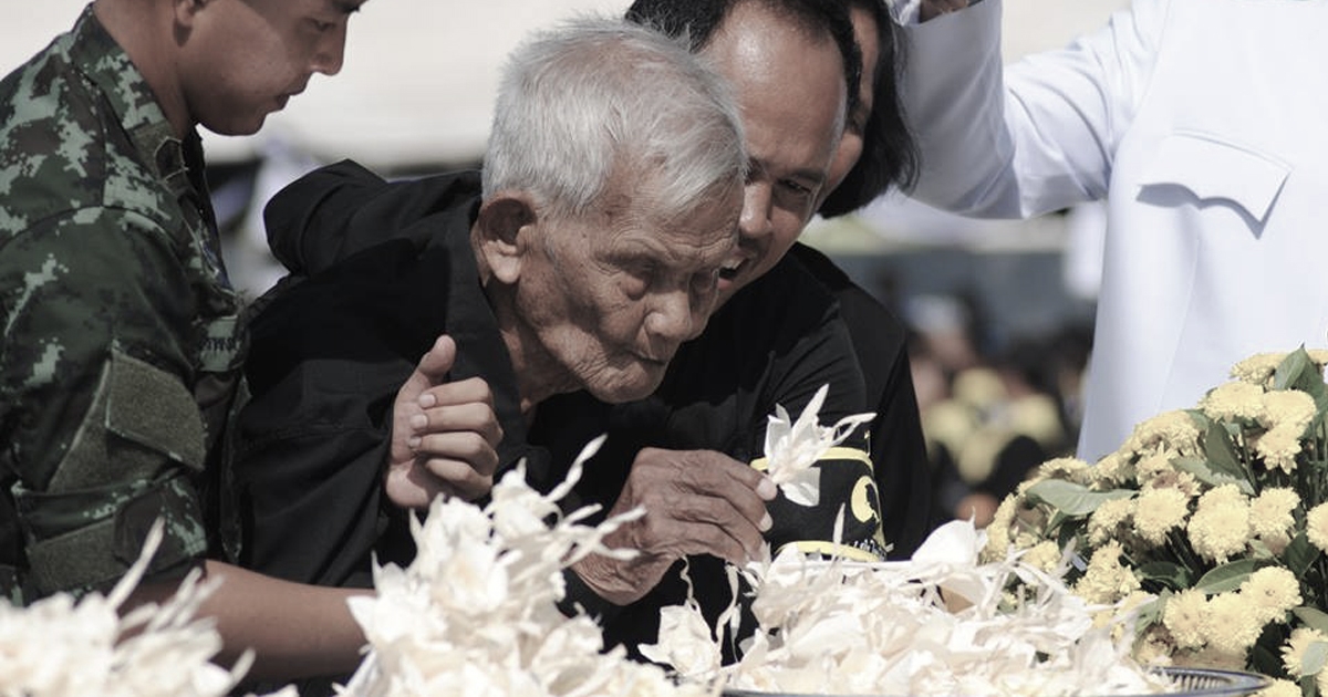 โซเชียลน้ำตารื้น คุณตาเฒ่าใจภักดี ขอวางดอกไม้จันทน์เพื่อถวายแด่ในหลวง ร.9