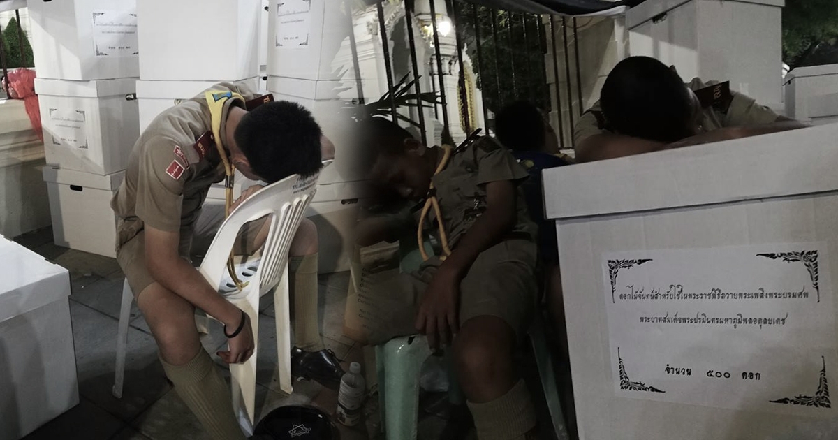 เบื้องหลัง ลูกเสือซุ้มวางดอกไม้จันทน์ นอนพักหลังทำงานถึงตี 3 ทุกหยาดเหงื่อเพื่อในหลวง ร.9