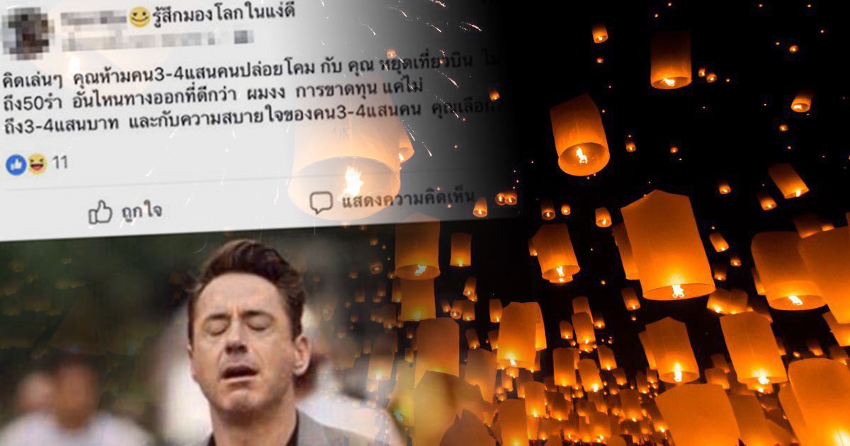 สวดยับ ! หนุ่มโพสต์หนุนงดเที่ยวบิน ให้คนปล่อยโคม เพื่อความสบายใจ !?