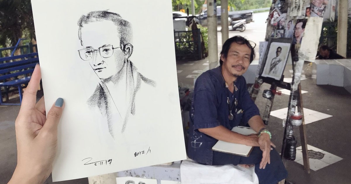 ตื้นตัน...ลุงนั่งวาดพระบรมสาทิสลักษณ์ ร.9 เผยความตั้งใจจะวาด 1 ล้านใบ