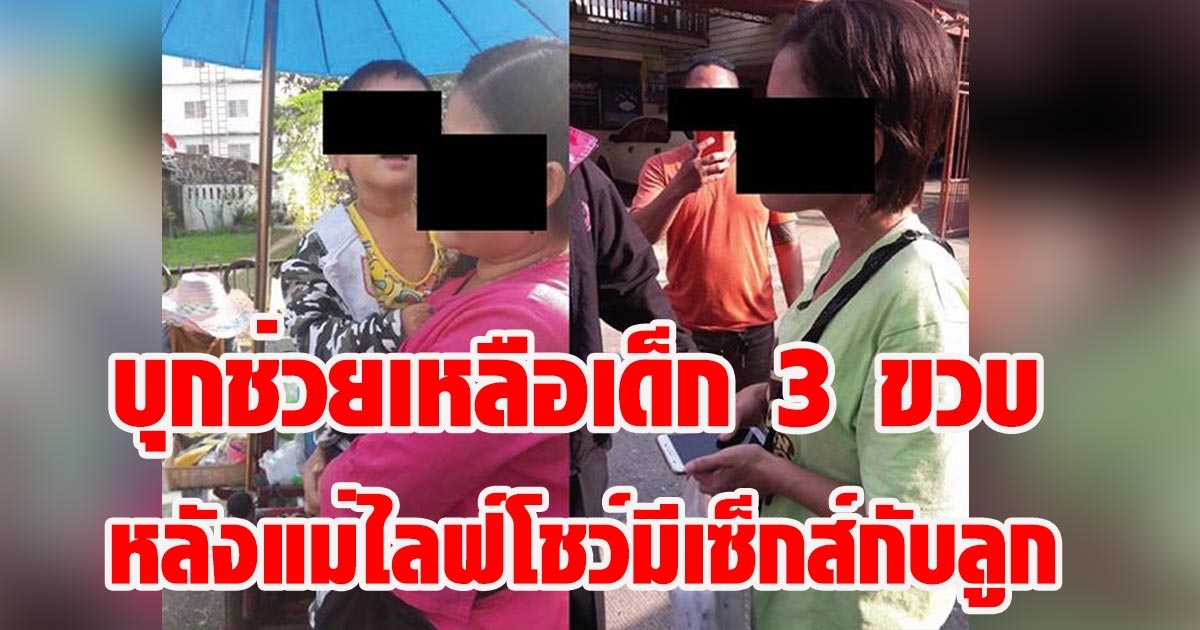 บุกช่วยเหลือเด็ก 3 ขวบ หลังแม่ไลฟ์โชว์มีเซ็กส์กับลูก บอกทำให้ก่อนจะซื้อขนมให้