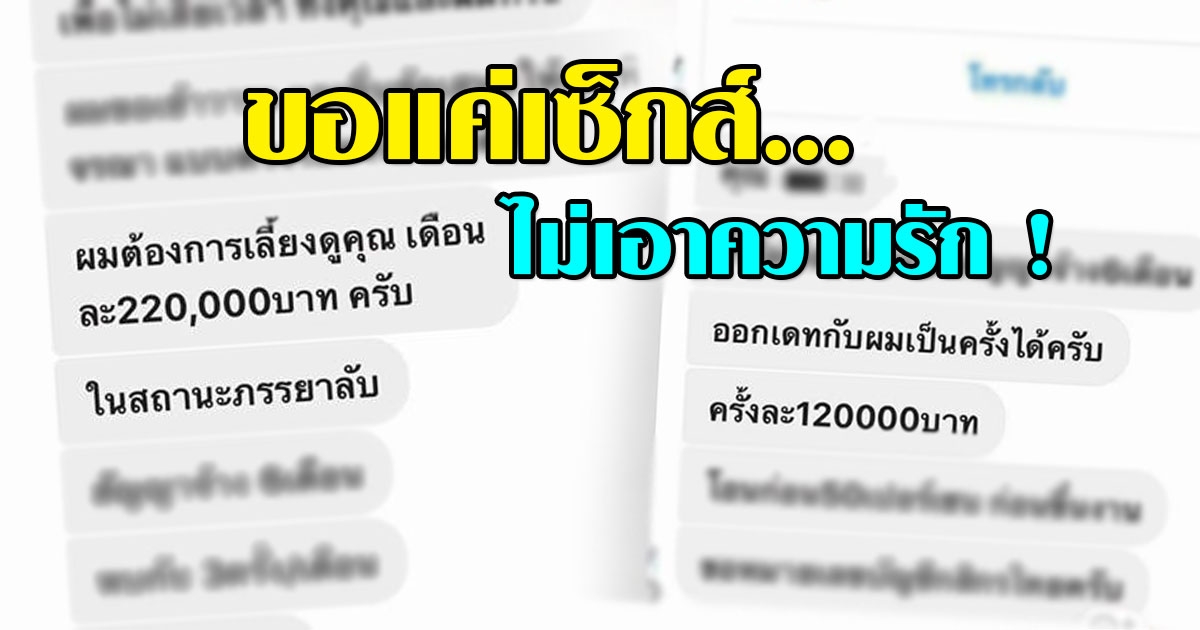 เผยแชทลับ อ้างเป็นผู้บริหาร เสนอจ่ายสาว 2.2 แสน ขอแค่เซ็กส์ ไม่เอาความรัก
