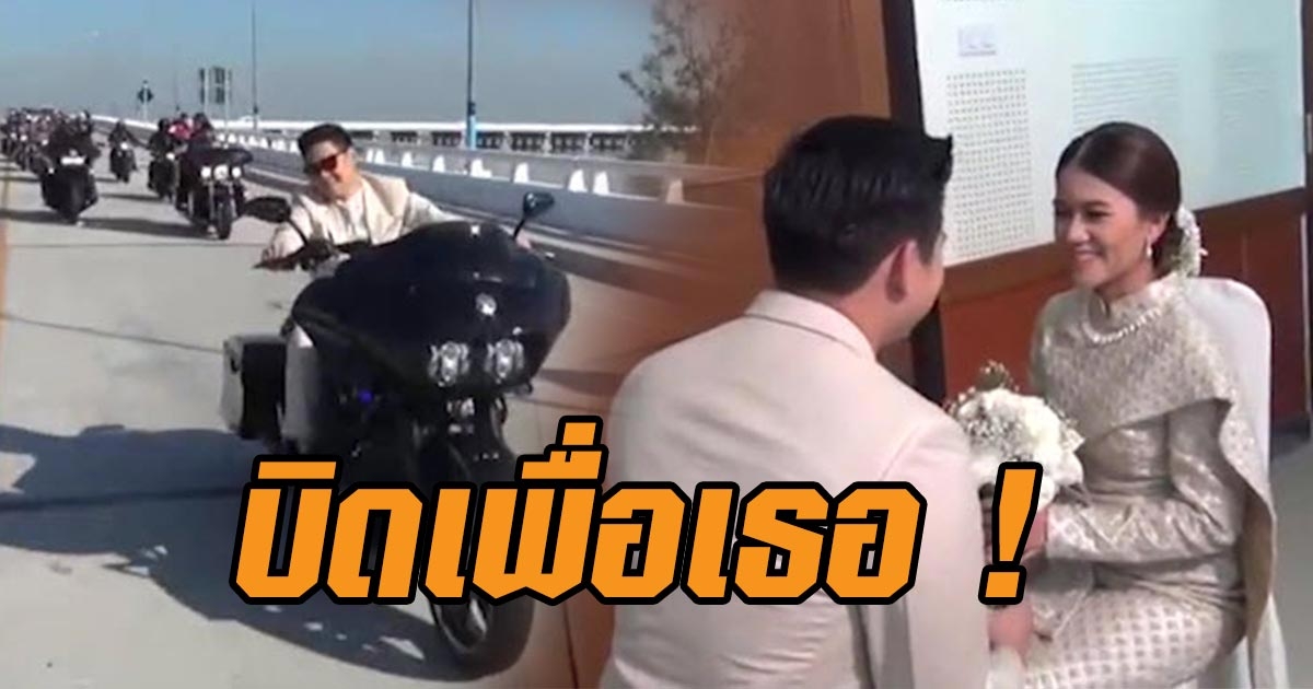 ตื่นตา เจ้าบ่าวพร้อมเพื่อน ๆ ขี่รถฮาร์ลีย์ รอบเมืองชลบุรี ก่อนเข้าพิธีขันหมาก