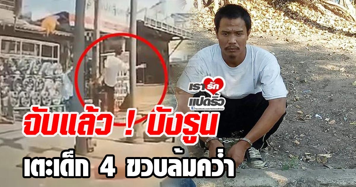 จับแล้ว บังรูน เตะเด็ก 4 ขวบล้มคว่ำ - โดนใส่กุญแจมือหน้ายังนิ่ง
