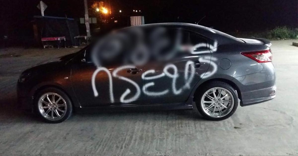 หนุ่มเงิบ จอดรถทิ้งไว้ กลับมาเจอพ่นสีด่าหยาบทั้งคัน จะบอกเมียยังไงเนี่ย