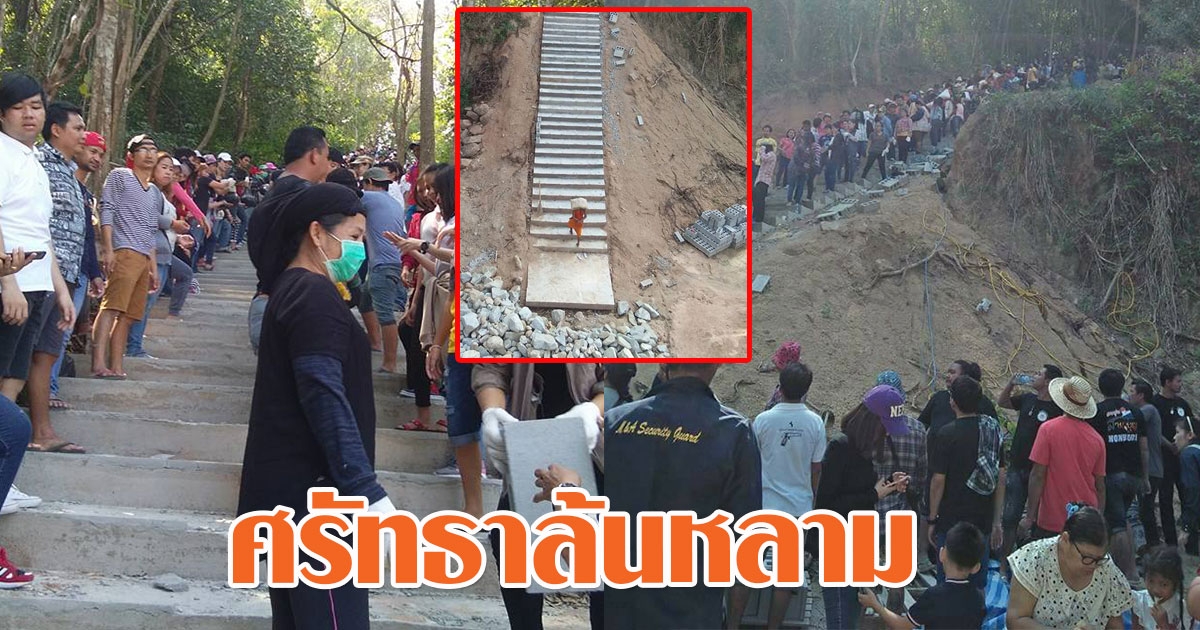 พระแบกปูนขึ้นเขา สร้างศรัทธา ญาติโยมนับพันแห่อนุโมทนา ต่อแถวเป็นกิโลช่วยสร้างวัด