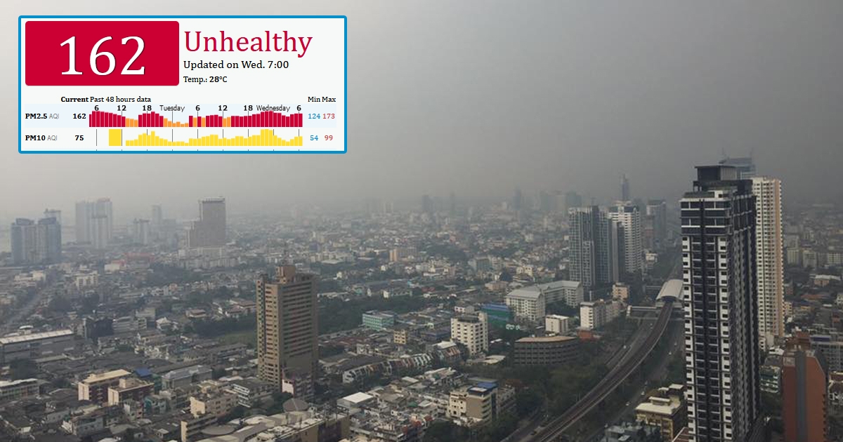เพจดังโชว์ค่าฝุ่นทั่วกรุงเทพฯ สูงปรี๊ดเกินมาตรฐาน ชี้ฟ้าขมุกขมัวไม่ใช่หมอก !