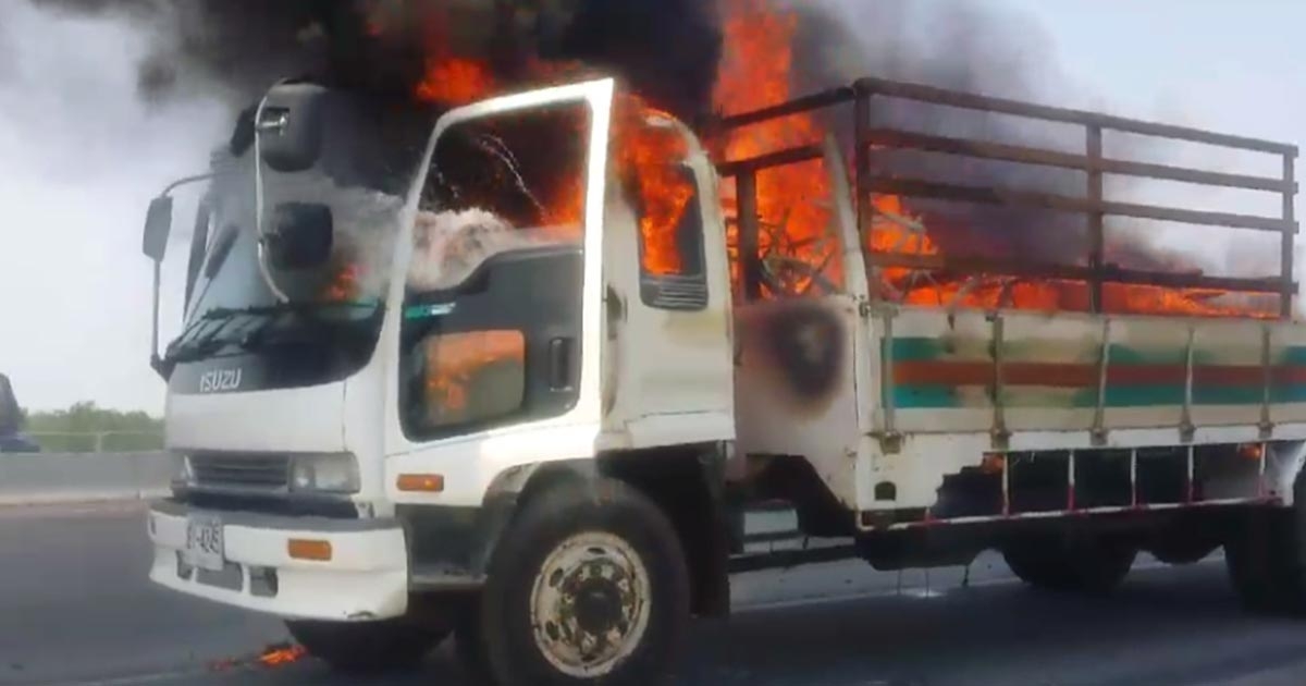 ระทึก ไฟไหม้รถบรรทุกเฟอร์นิเจอร์ คนขับหวิดถูกย่างสด มึนสาเหตุทั้งที่ไม่ติดแก๊ส