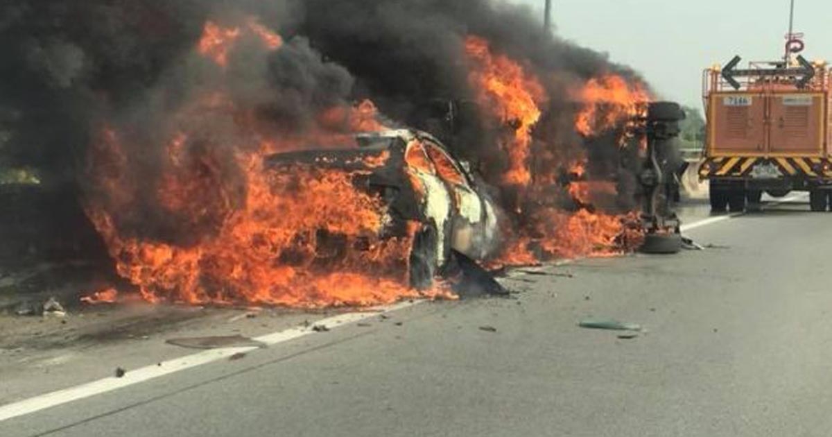 ระทึก ! เก๋งชนรถตู้บนทางด่วนศรีสมาน ไฟลุกไหม้ทั้ง 2 คัน เจ็บ 2 ราย