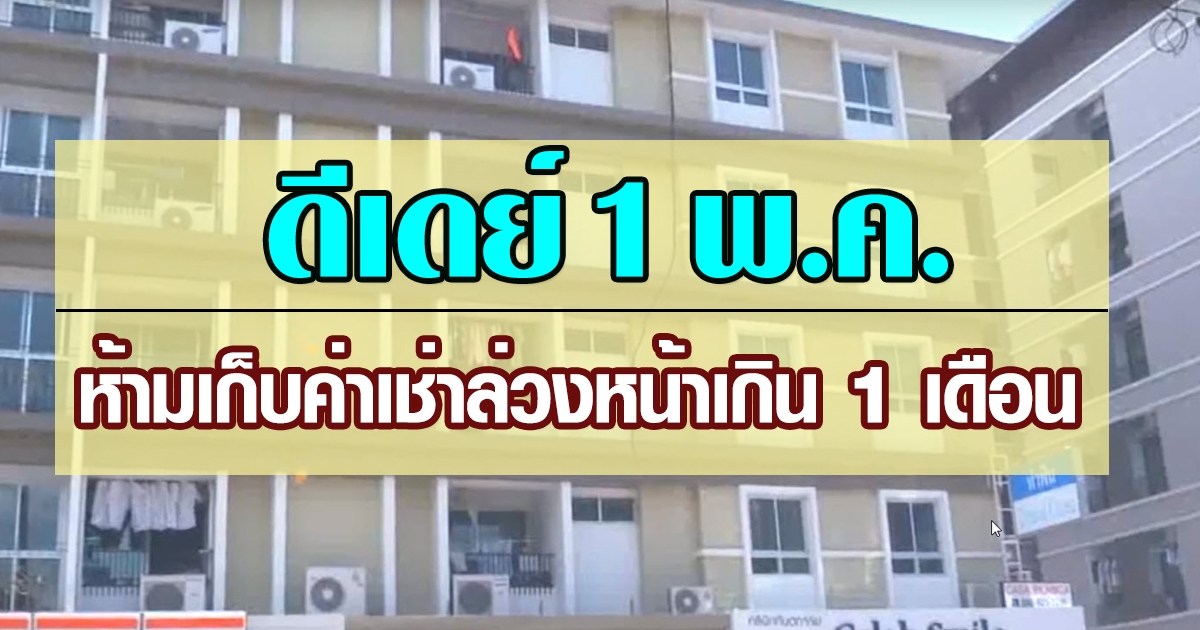 ดีเดย์ 1 พ.ค. ห้ามเก็บค่าเช่าล่วงหน้าเกิน 1 เดือน - น้ำไฟเก็บตามจริง ฝ่าฝืนปรับ 1 แสน
