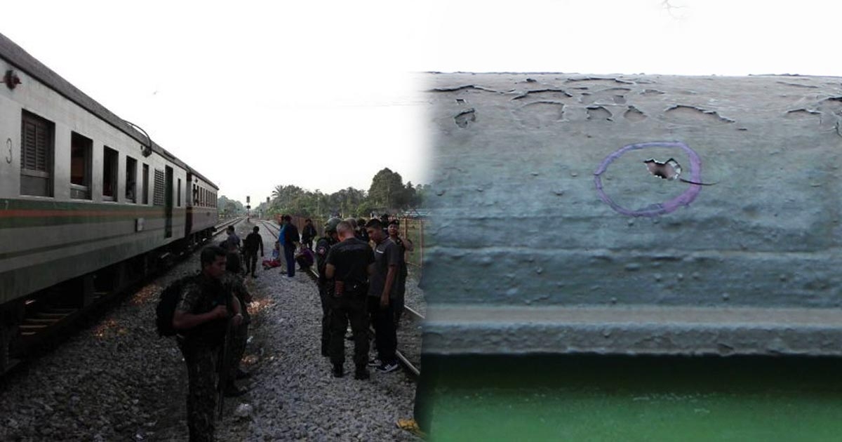 2 โจรใต้แต่งหญิง รัวอาก้าใส่รถไฟคาสถานีเจาะไอร้อง ผู้โดยสารหมอบหนีตายทั้งขบวน