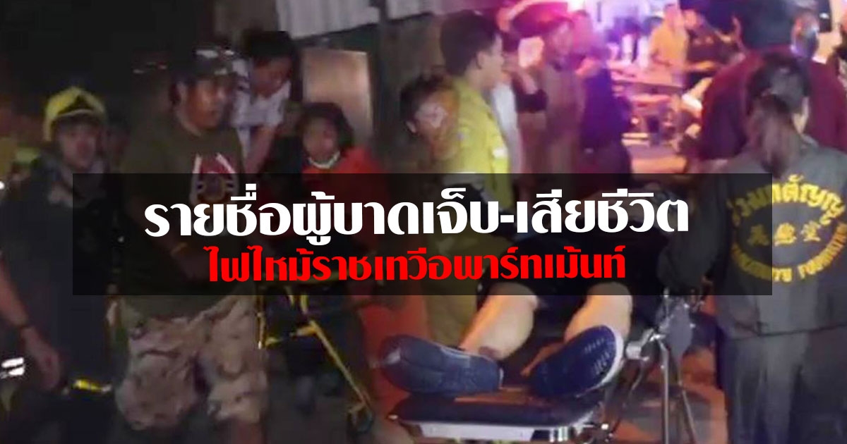 เปิดรายชื่อผู้บาดเจ็บ-เสียชีวิต ไฟไหม้ราชเทวีอพาร์ทเม้นท์ พบพม่า-เวียดนาม อื้อ !