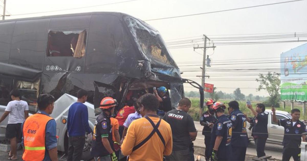 ชนสนั่น 3 คันรวด รถบัส 2 ชั้น เสยท้ายสิบล้อ-เก๋ง ดับ 1 ราย