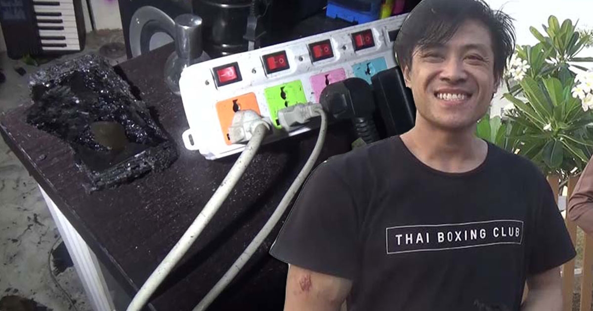 อุทาหรณ์ ! หนุ่มชาร์จโน้ตบุ๊ก-มือถือ เต็มปลั๊กพ่วง ก่อนลัดวงจรไหม้วอด