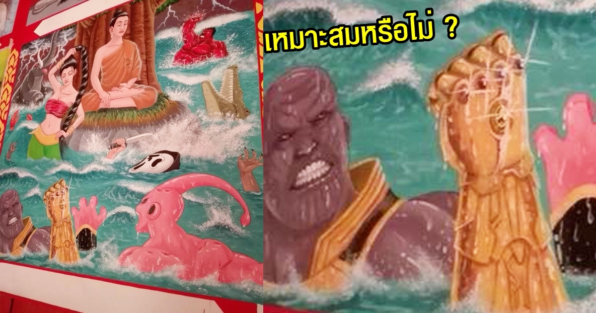 ฮือฮา ธานอส ปรากฏตัวในภาพจิตรกรรมฝาผนังข้างวัด ถกสนั่นเหมาะสมหรือไม่