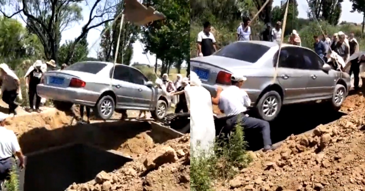 รักมากจนยากจากกัน ชายจีนขอใช้รถแสนรักต่างโลงศพ ฝังลงหลุมไปพร้อมกัน