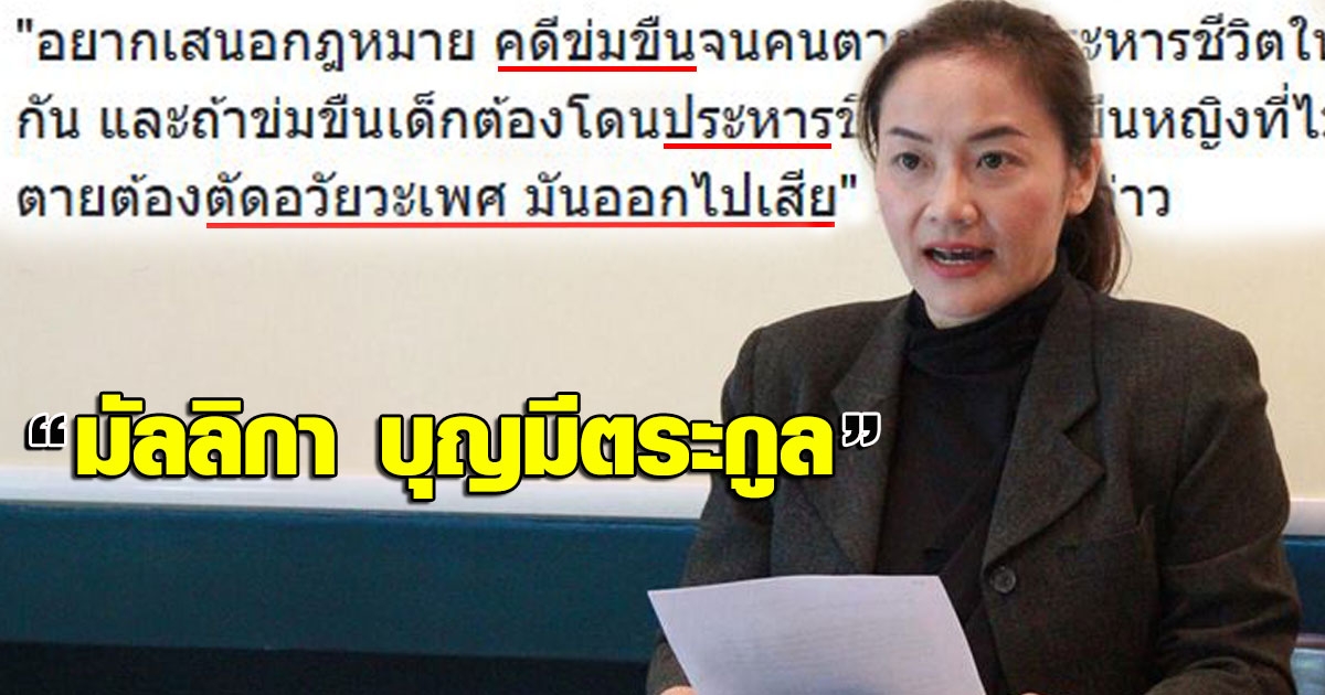 จัดหนัก ! มัลลิกา ชงเพิ่มโทษคดีข่มขืนจนตาย ต้องประหาร-ถ้าไม่ตายให้ตัดจู๋