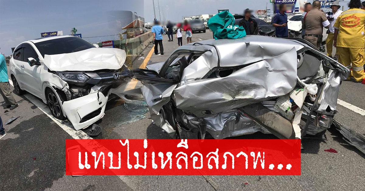 รถชนระนาว 5 คันรวด บนทางด่วนบูรพาวิถี ชนอัดกันเละแทบไม่เหลือสภาพ